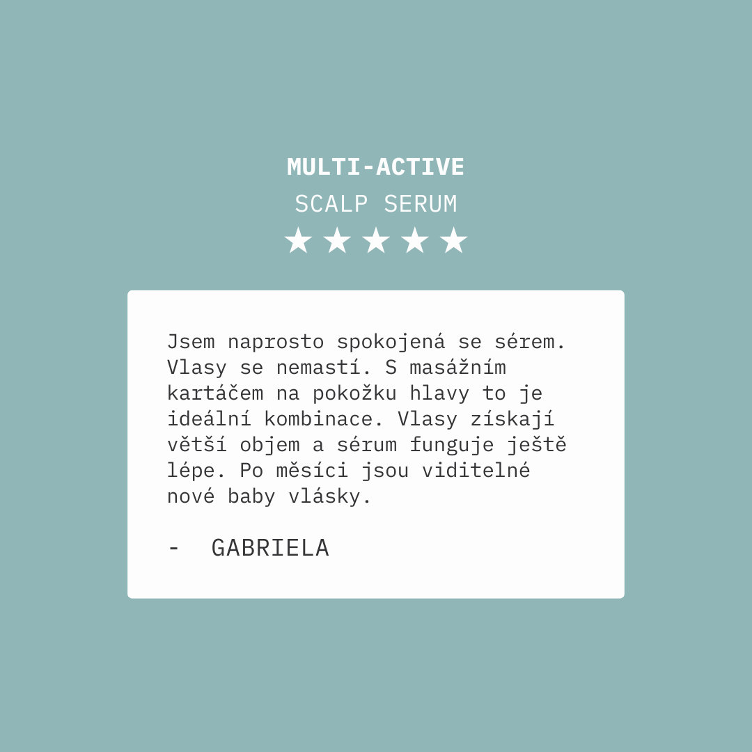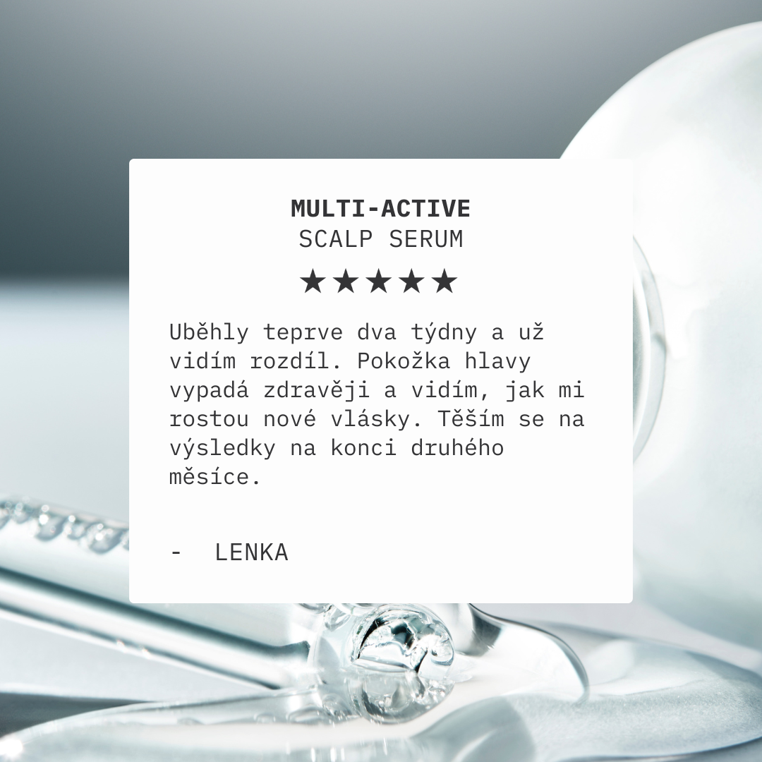 Naše Multi-aktivní sérum na pokožku hlavy pomáhá obnovit rovnováhu, restartovat kořínky a navrátit ti kontrolu nad zdravým svých vlasů.